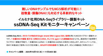ssDNA-Seq Kit モニターキャンペーン タカラバイオ株式会社 ssDNA-Seq Kit モニターキャンペーン 【期間】 2025年10月1日(水)~11月28日(金)まで開催中! 詳しくはこちらまで! facebook twitter line