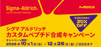 カスタムペプチド合成キャンペーン シグマアルドリッチジャパン合同会社 カスタムペプチド合成キャンペーン 【期間】2025年10月1日(水)~12月26日(金)まで開催中! 詳しくはこちらまで! facebook twitter line