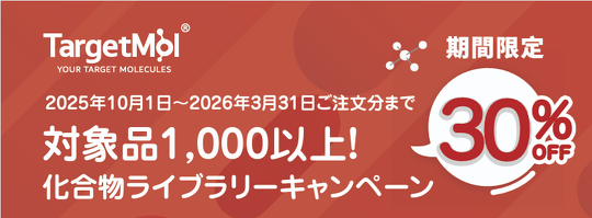 TargetMol 化合物ライブラリーキャンペーン 30%OFF 岩井化学薬品株式会社 TargetMol 化合物ライブラリーキャンペーン 30%OFF 【期間】2025年10月1日~2026年3月31日まで開催中! 詳しくはこちらまで! facebook twitter line