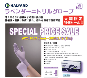 HALYARD ラベンダーニトリルグローブ SPECIAL PRICE SALE 株式会社イナ・オプティカ HALYARD ラベンダーニトリルグローブ SPECIAL PRICE SALE 【期間】2025年10月21日(火)~2026年3月19日(木)まで開催中! 詳しくはこちらまで! facebook twitter line