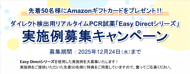Easy Directシリーズ 実施例募集キャンペーン タカラバイオ株式会社 Easy Directシリーズ 実施例募集キャンペーン 【期間】2025年10月24日~2025年12月24日まで開催中! 詳しくはこちらまで! facebook twitter line