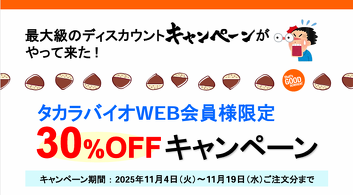 タカラバイオWEB会員様限定 30%OFFキャンペーン タカラバイオ株式会社 タカラバイオWEB会員様限定 30%OFFキャンペーン 【期間】2025年11月4日~2025年11月19日まで開催中! 詳しくはこちらまで! facebook twitter line