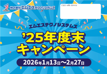 2025年度末キャンペーン 株式会社エムエステクノシステムズ 2025年度末キャンペーン 【期間】2026年1月13日(火) ~ 2月27日(金)まで開催中! 詳しくはこちらまで! facebook twitter line